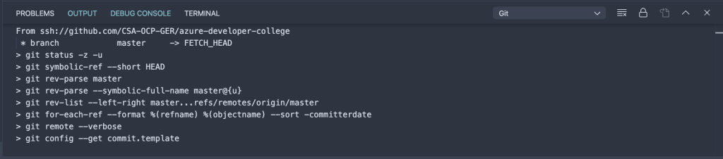 When you now open Visual Studio Code and start to synchronize your git repository the calls to GitHub will use the credentials saved via ssh-agent and all commands executed will be successful.