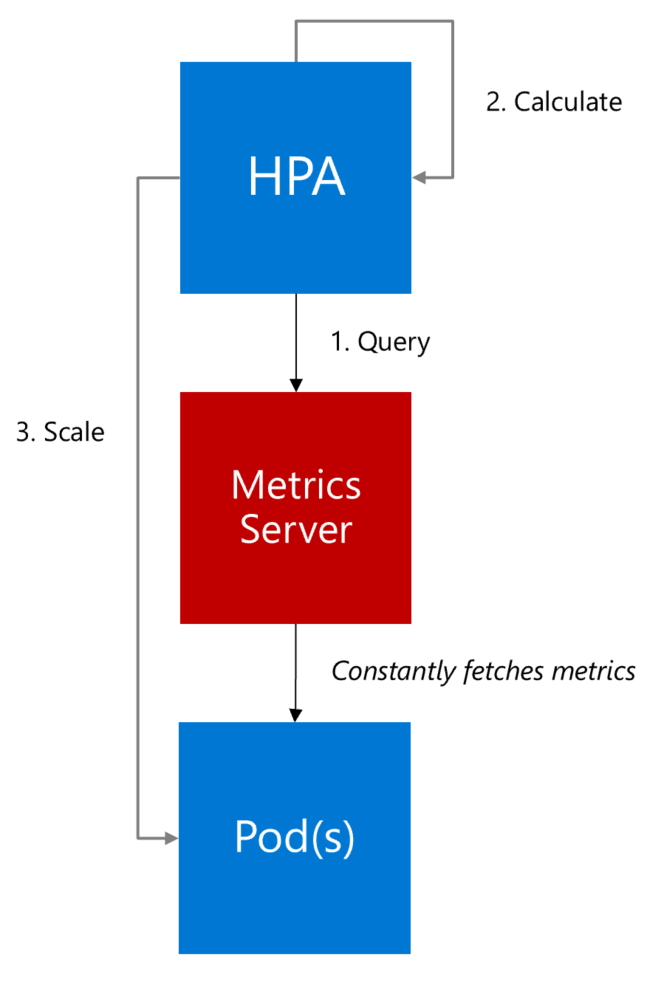 The HPA works in combination with the Metrics server, which determines the corresponding metrics from running Pods and makes them available to the HPA via an API (Resource Metrics API). Based on this information, the HPA is able to make scaling decisions and scale up or down according to what you defined in terms of thresholds. Let’s have a look at a sample definition in YAML: